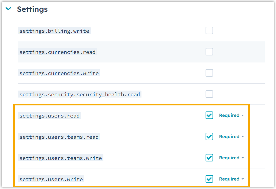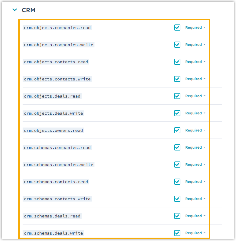 crm.objects.companies.write crm.objects.contacts.read crm.objects.contacts.write crm.objects.deals.read crm.objects.deals.write crm.objects.owners.read crm.schemas.companies.read crm.schemas.companies.write crm.schemas.contacts.read crm.schemas.contacts.write crm.schemas.deals.read crm.schemas.deals.write Settings settings.users.read