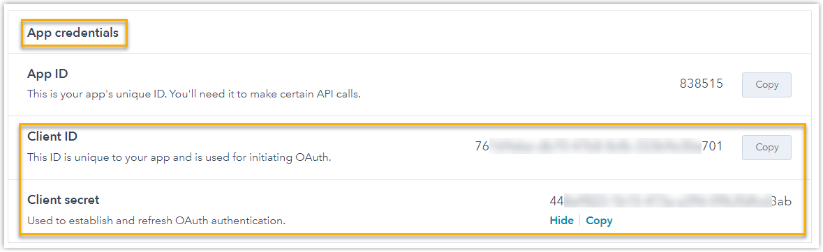 You need to create an application on HubSpot for integration using a developer account, and configure the authorization settings.