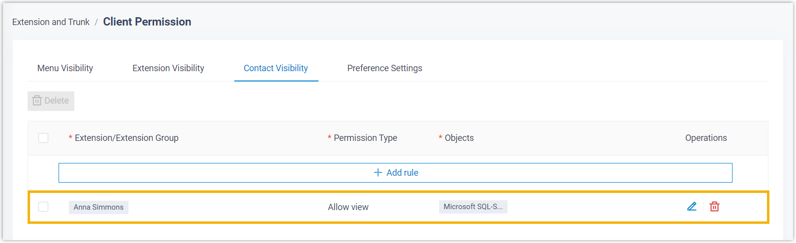 By synchronizing Microsoft SQL contacts to Cloud Voice, extension users can conveniently call these contacts from Cloud Voice App UC Clients. In addition, the system can automatically route inbound calls from Microsoft SQL contacts to the specified destinations based on phonebook matches.