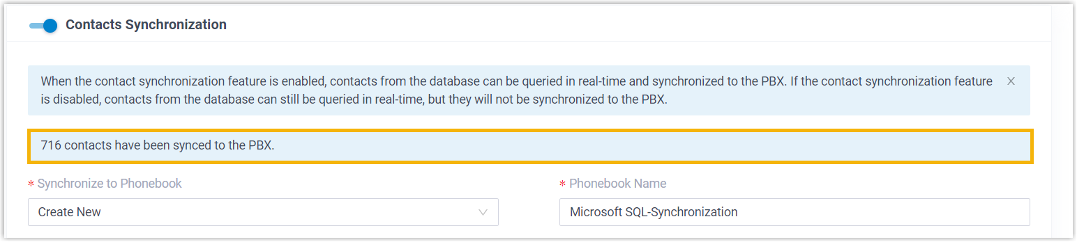 - On Microsoft SQL configuration page, scroll down to the Contacts Synchronization section.