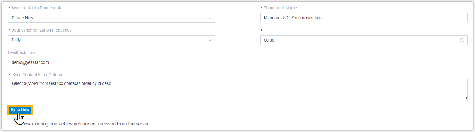 - Click Sync Now to synchronize contacts to PBX