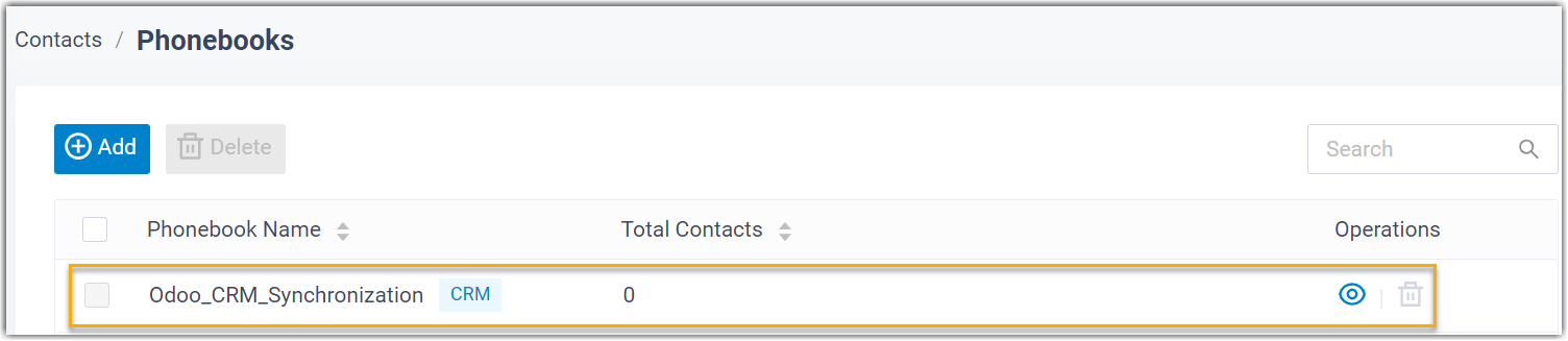 Note: This is a one-way sync from Odoo CRM to Cloud Voice, therefore the associated phonebook and the synced
