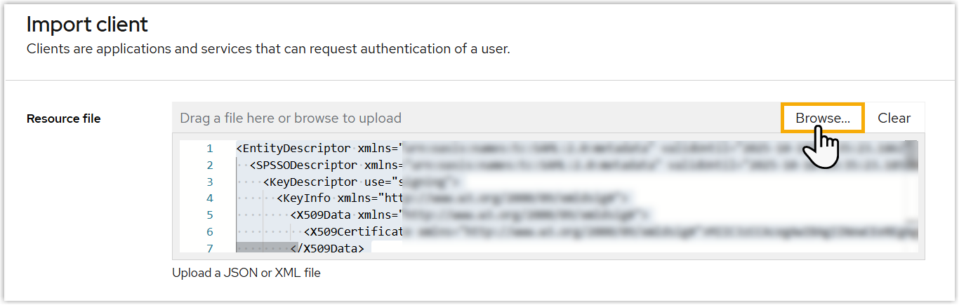 Browse to upload the metadata file obtained from