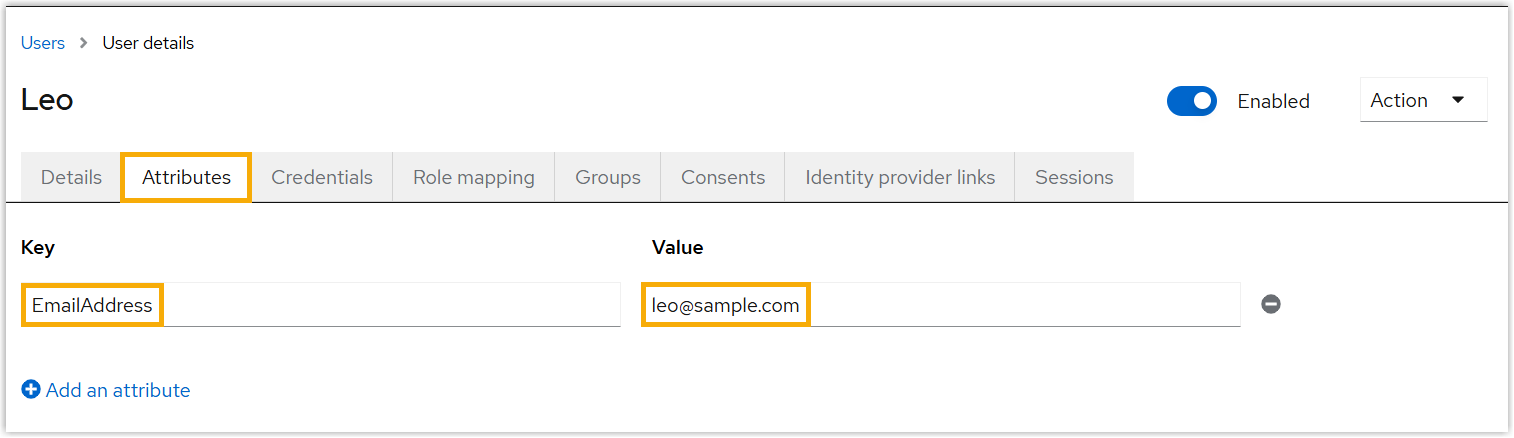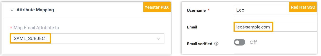 custom attribute in PBX as well as in the Red Hat SSO user