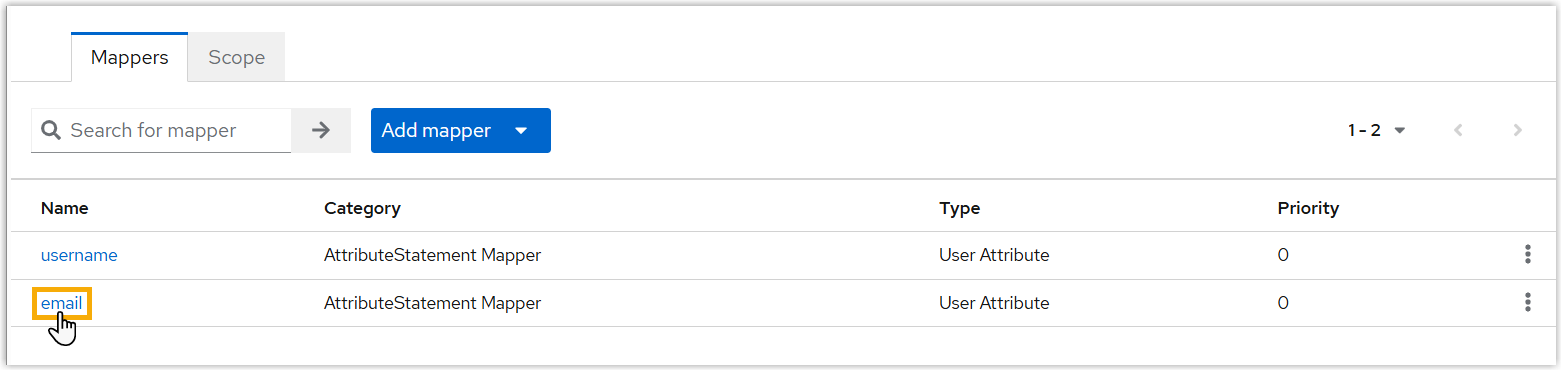 - Under Mappers tab, click the email attribute