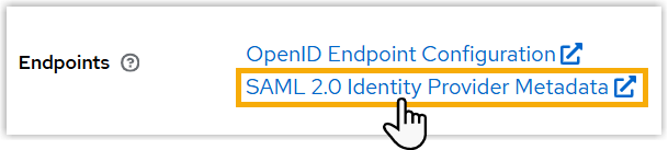 File to download the metadata file for SAML client configuration