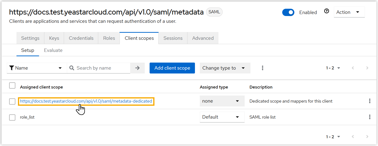 - Under Client scopes tab, click the dedicated