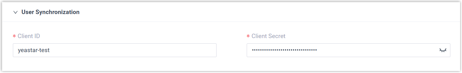 - In the User Synchronization section, paste the client ID and client secret of OIDC Client.
