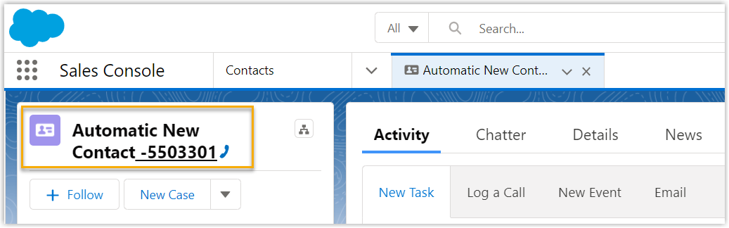 After the integration with Salesforce CRM, you can set up automatic or manual lead or contact creation. If enabled, a new contact or lead can be created on the CRM when the user receives a call from an unknown number or places a call to an unknown number. This feature helps you to build your contact database efficiently and ensure all contact information is captured.