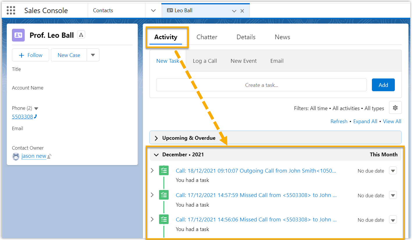 After the Salesforce CRM integration, all outbound calls, incoming calls, and missed call records will be logged to CRM automatically, which helps users to keep track of every conversation.