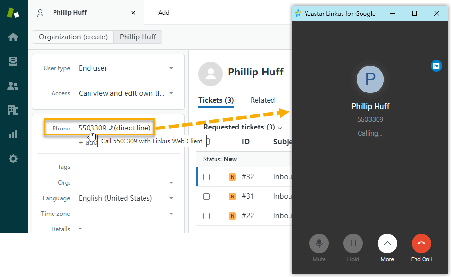 - Users can click on detected numbers on the Zendesk web page, a call is