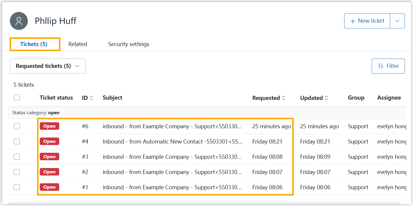 calls) will be logged into the auto-created tickets, which are displayed in