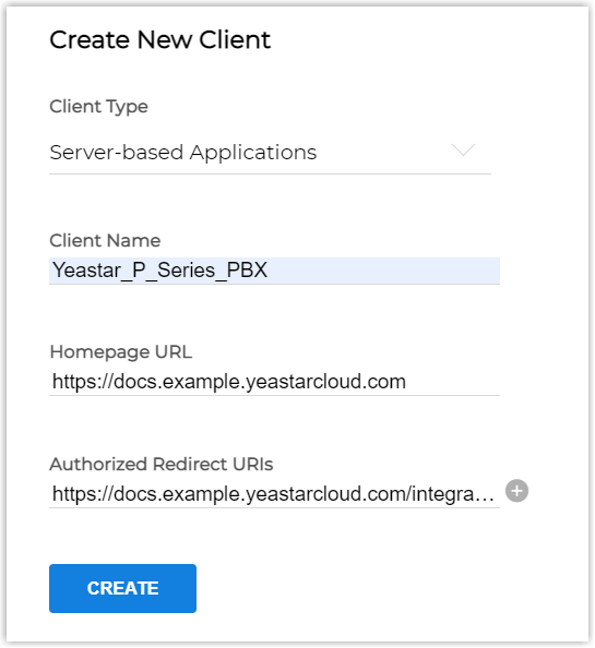 - Homepage URL: The domain name of your PBX, which will be used to associate with a Zoho application.