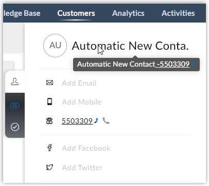 A new contact or account can be created automatically or manually in Zoho Desk when the associated extensions call or receive calls from an unknown number.