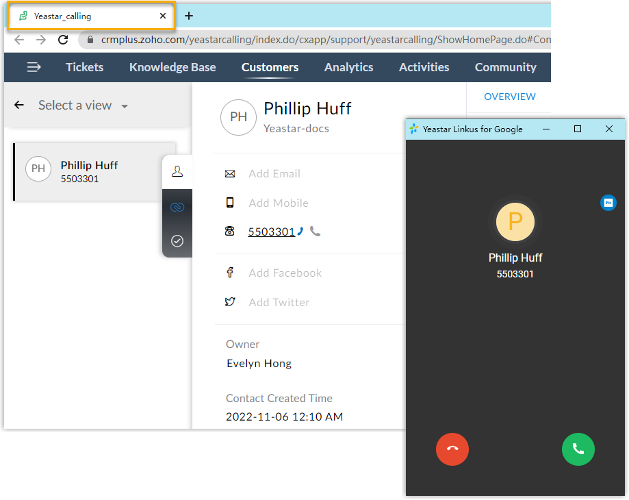 contact, or finish a call with a Zoho Desk contact, a new browser tab
