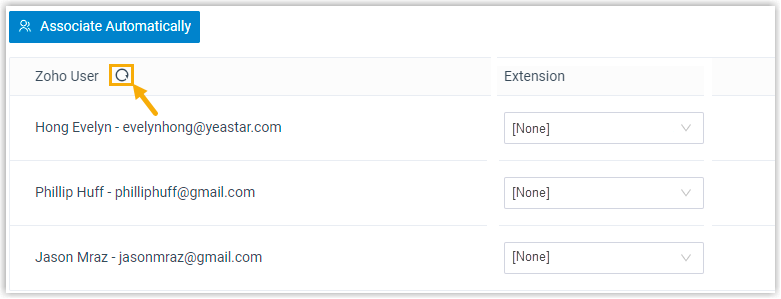 - If users bind different email addresses to their Zoho account and PBX extension, you need to manually associate users' Zoho account and PBX extension.