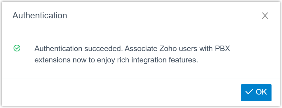- The associated Zoho users can make or receive calls with their PBX extensions.