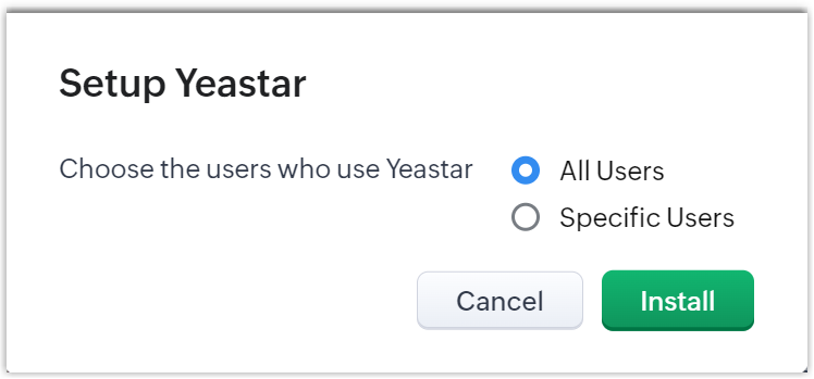- All Users: Grant all Zoho users to access integration features.
