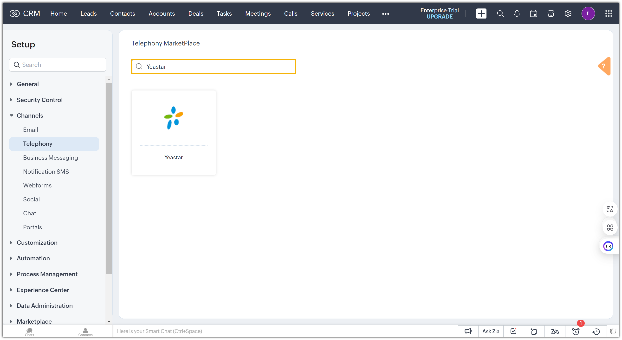 - On the Telephony MarketPlace page, search for