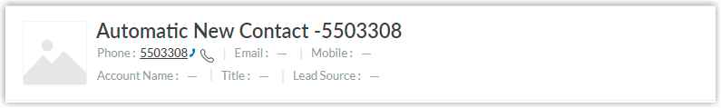 A new contact or lead can be created automatically or manually in CRM when the Zoho user receives a call from an unknown number, or when the user makes a call to an unknown number.