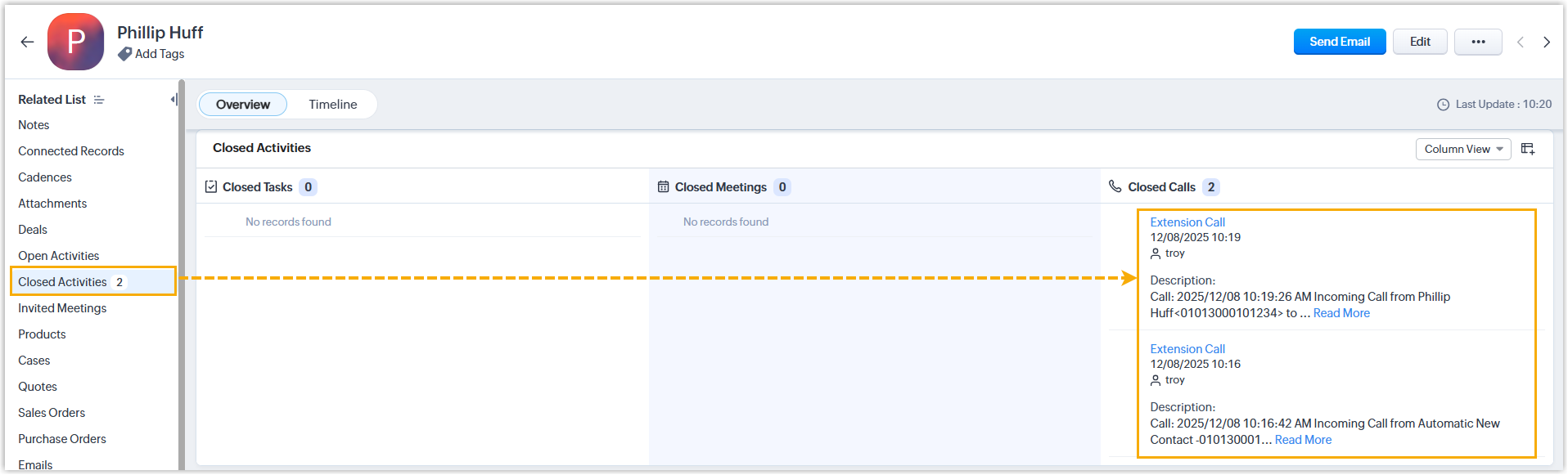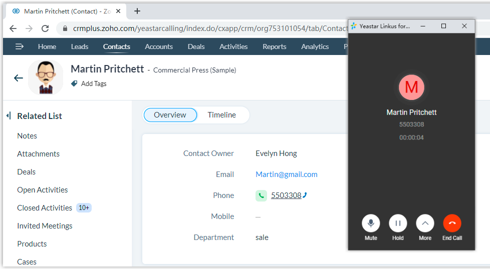 After the Zoho CRM integration, all outbound calls, incoming calls, and missing call records will be logged to CRM automatically, which helps users to keep track of every conversation.