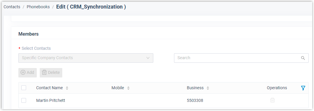 Either inbound calls from Salesforce contacts or outbound calls to the contacts will trigger a CRM contact lookup. If there exists the same number in CRM, the matched Zoho CRM contact will be synchronize to an associated PBX phonebook, and the synchronized contact is read-only.