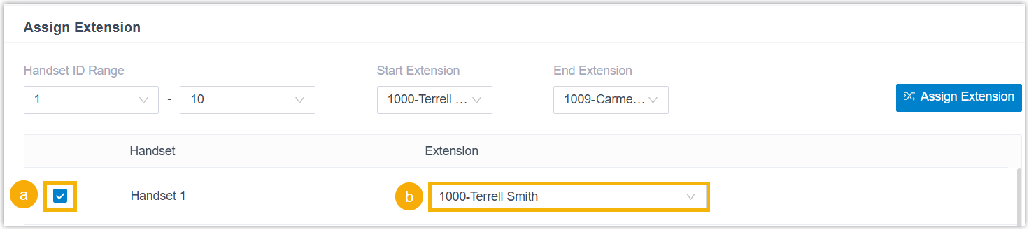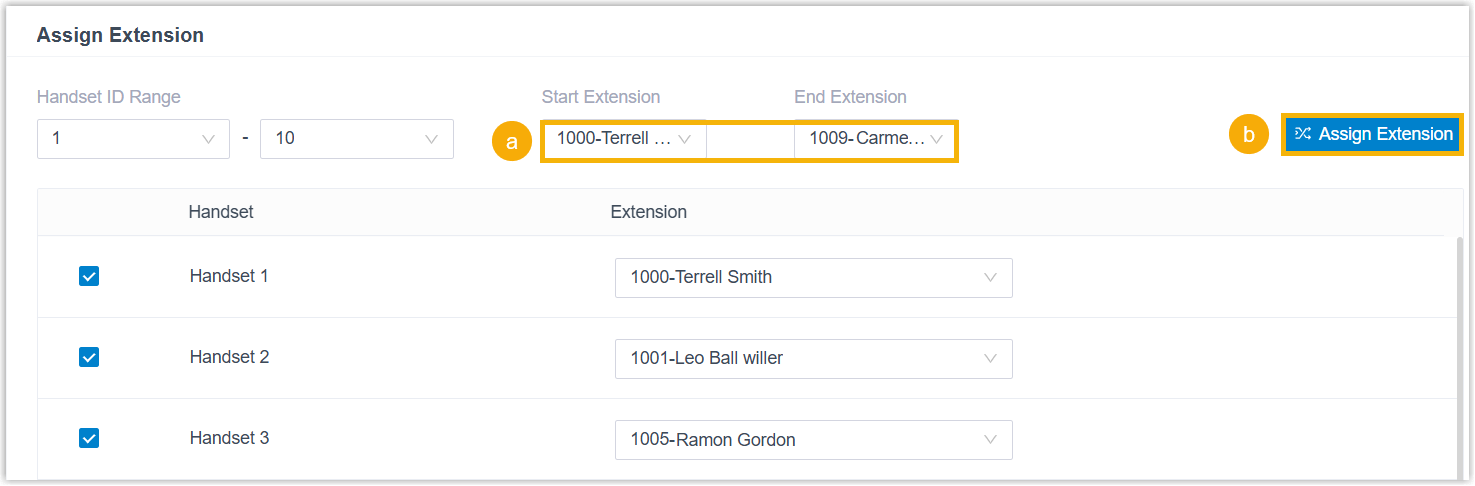 Handsets are automatically enabled and assigned with the specified extensions in sequence.