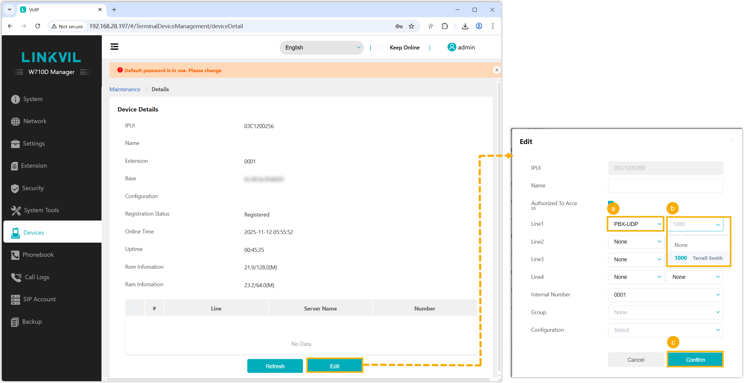 Tip: If your desired extension is not listed in the drop-down list, it indicates that the extension has been associated with an IP phone.- To release the extension from the associated IP phone, see Release an Extension from a Provisioned IP Phone.