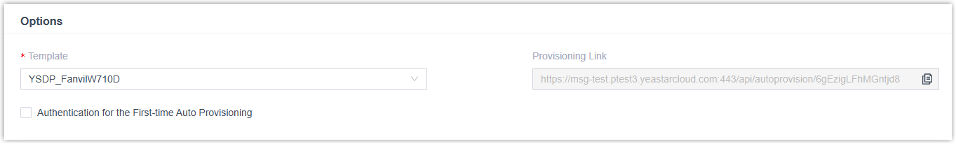 template from the drop-down list.Note: You can select the default template corresponding to the phone model, or customize your own template. For more information, see Create a Custom Auto Provisioning Template.