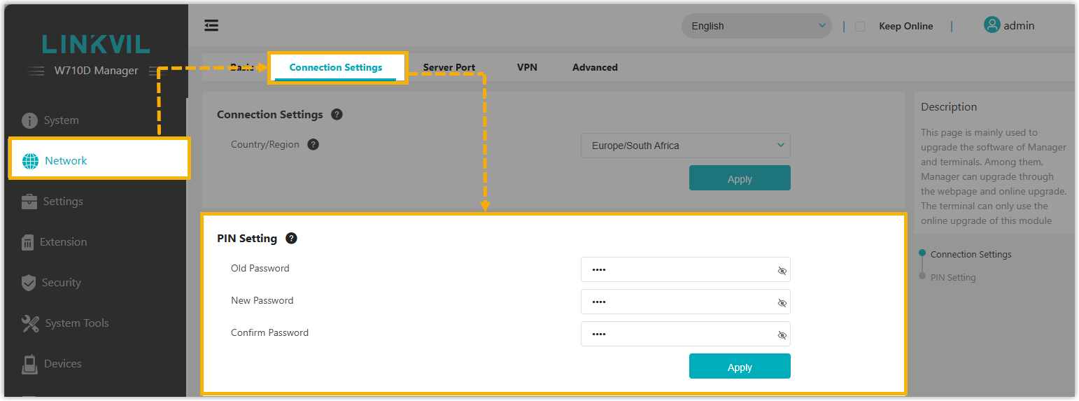 registration security.Note: In this example, the default PIN code of the W710D base station is