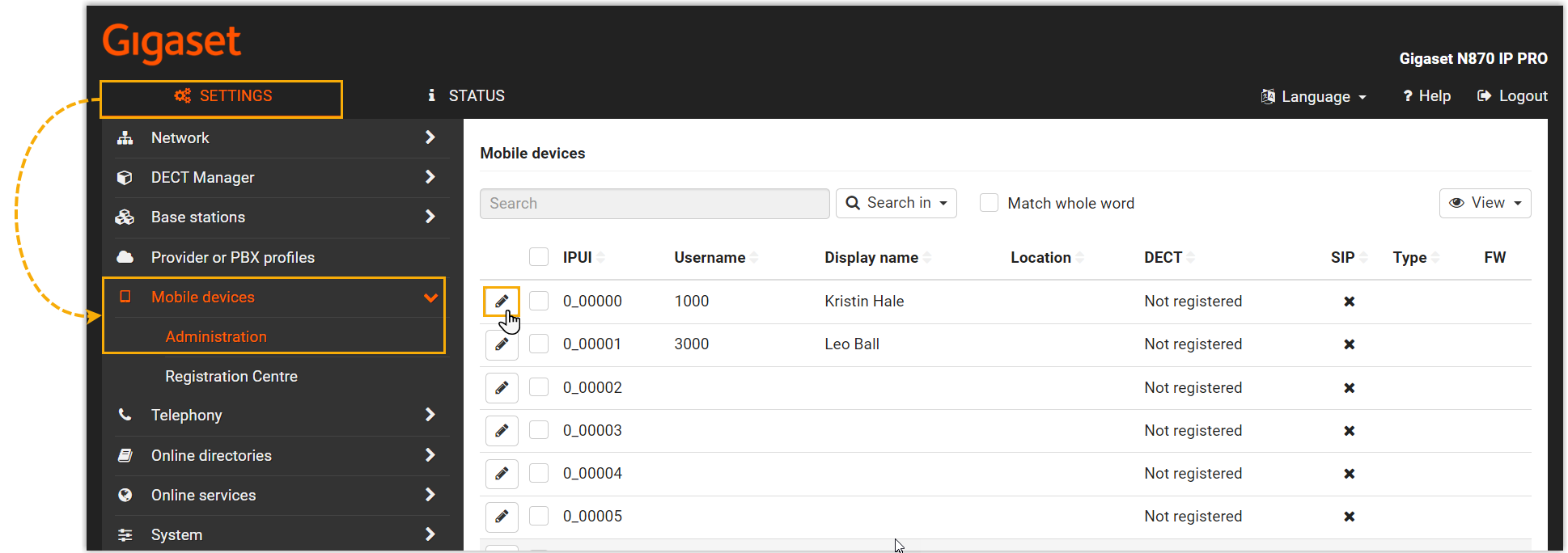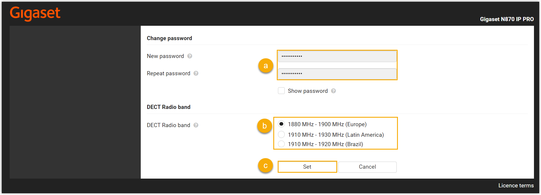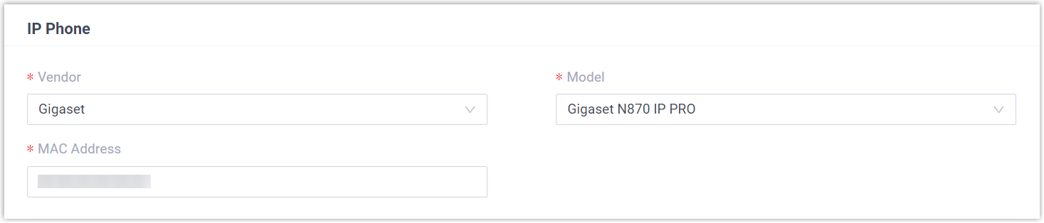 - Model: Select the device model. In this example, select Gigaset N870 IP PRO.