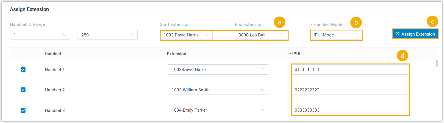 Handsets are automatically enabled and assigned with the specified extensions in sequence.