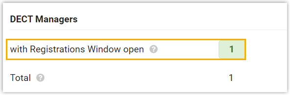 The with Registrations Window open field displays 1, indicating that the DECT base station is in registration mode at the given time duration.