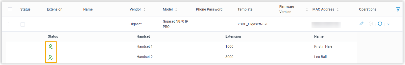 - Select the checkbox of the desired handset.