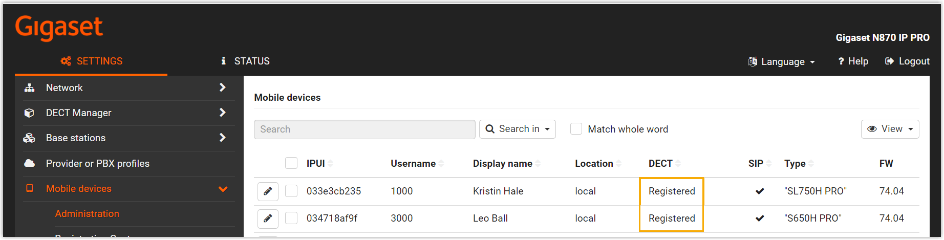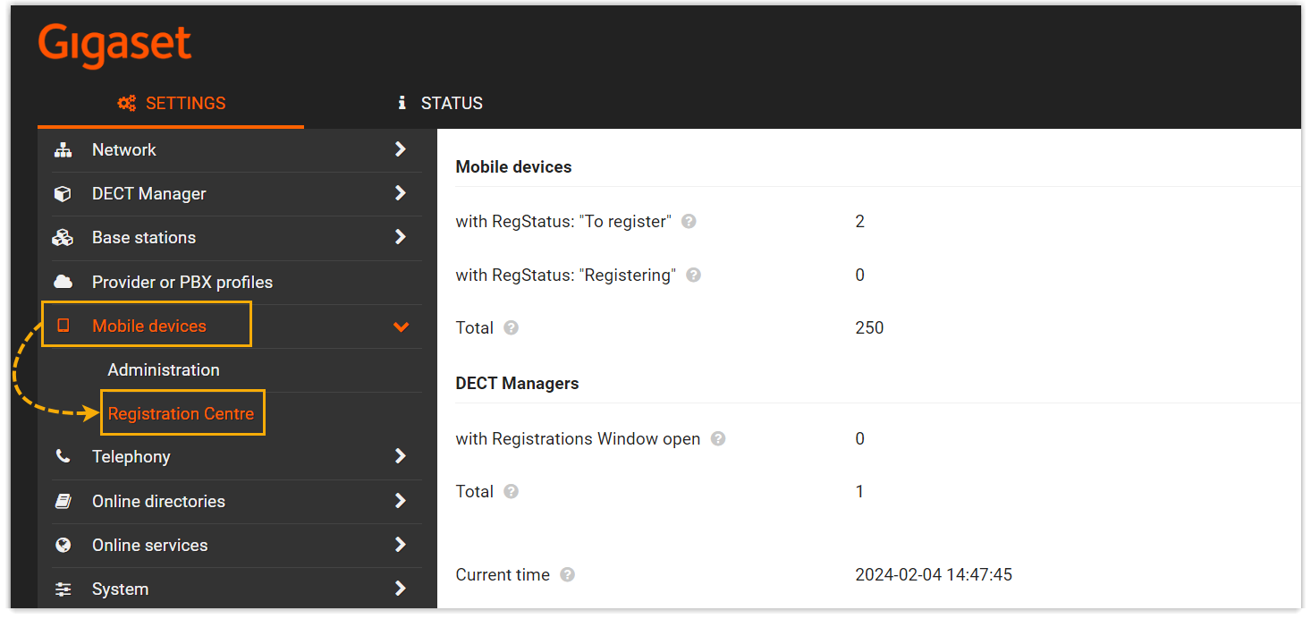 - On the web interface of DECT base station, you can check the