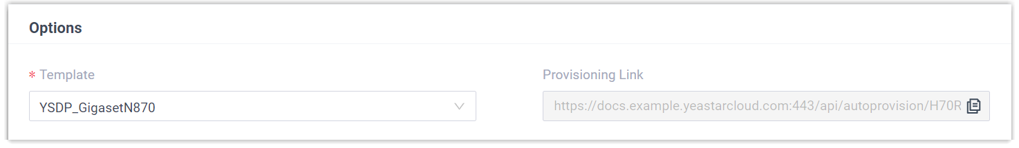 - Provisioning Link: A provisioning link is automatically generated, which points to the location where the phone's configuration file is stored.