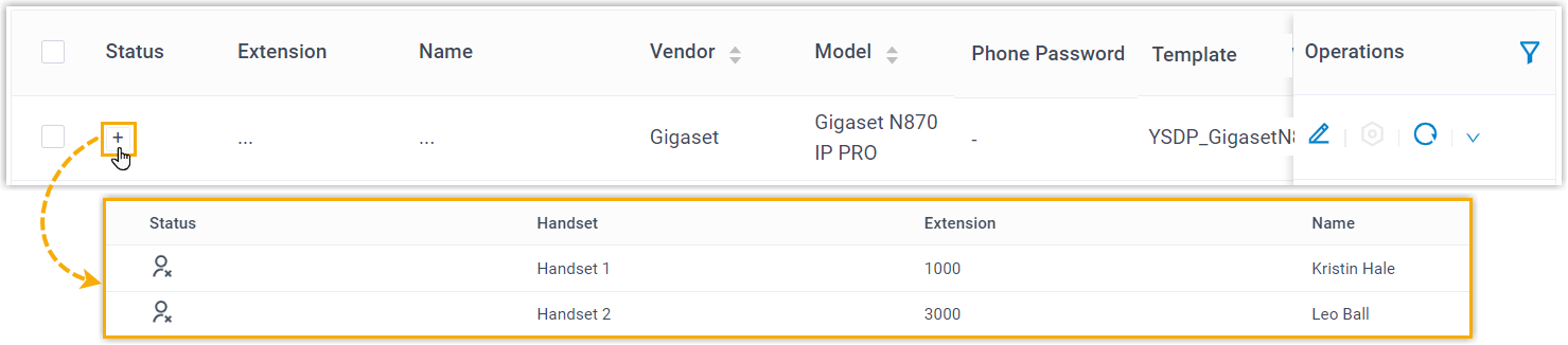 - Repeat the above steps to edit other handsets with extensions assigned until all the handsets are in To register status.
