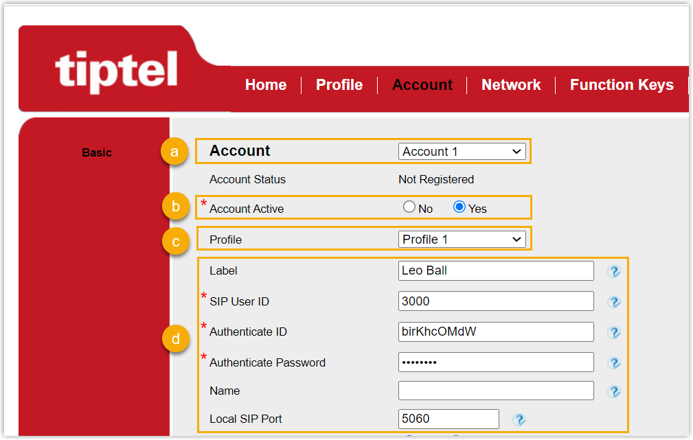 Step 2. Register extension on Tiptel IP phone