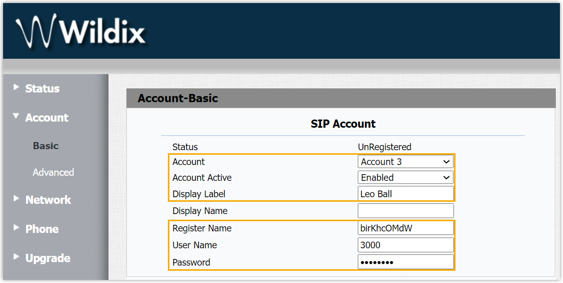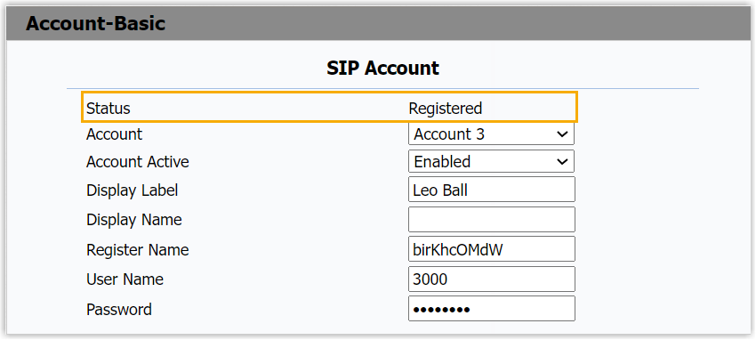 - Display Label: Enter the name associated with the account, which will be displayed on the phone screen.