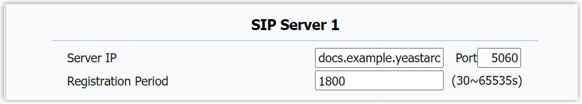 - In the SIP Server 1 section, enter the PBX