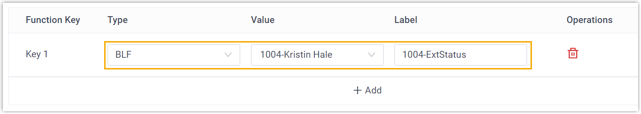 - Label: Optional. Enter a value, which will be displayed on the phone screen.