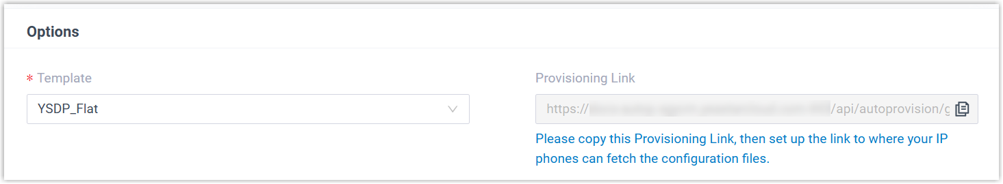 drop-down list.Note: You can select the default template corresponding to the phone model, or customize your own template. For more information, see Create a Custom Auto Provisioning Template.