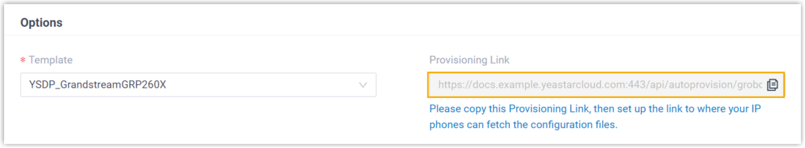 - On PBX web portal, copy the provisioning link from the phone's detail