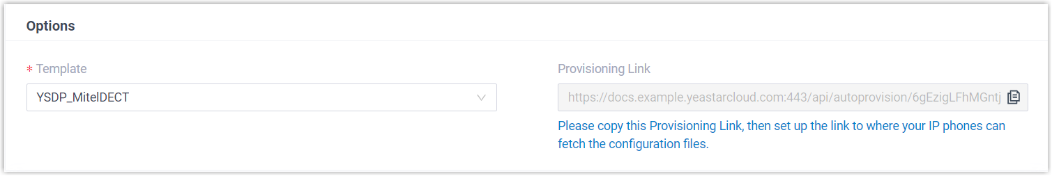 template from the drop-down list.Note: You can select the default template corresponding to the phone model, or customize your own template. For more information, see Create a Custom Auto Provisioning Template.