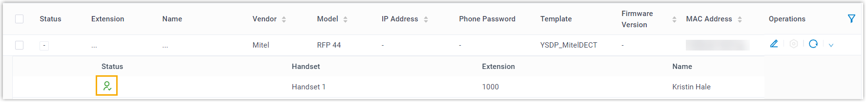 - On PBX web portal, you can check the registration status of the