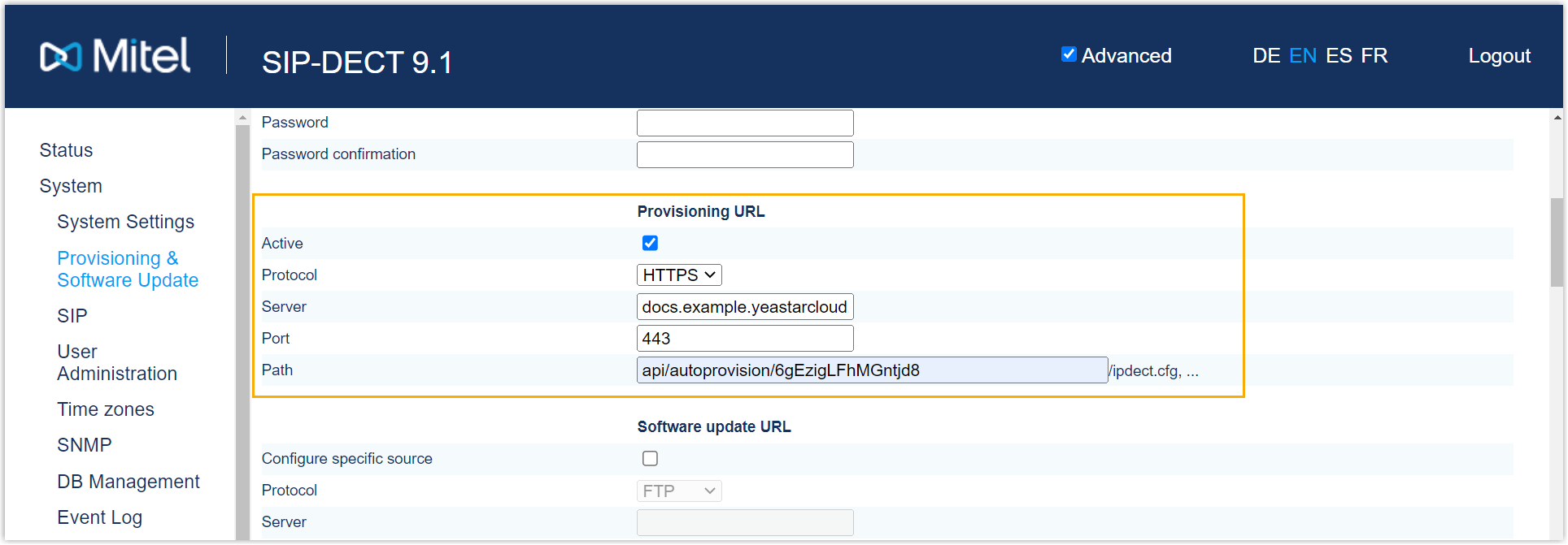 Step 2. Configure provisioning URL on Mitel DECT base station