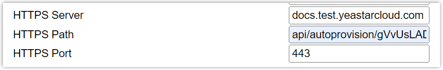 - HTTPS Path: Enter the HTTPS path provided in the URL. In this example, enter api/autoprovision/gVvUsLADybIdHwPX.