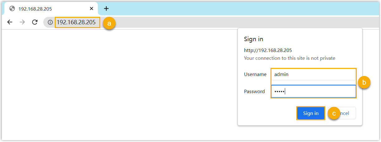 - Enter the username admin and the associated