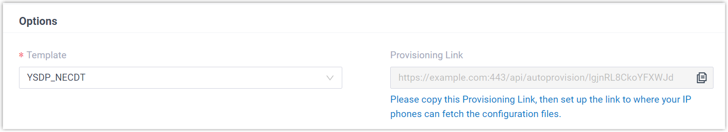 template from the drop-down list.Note: You can select the default template corresponding to the phone model, or customize your own template. For more information, see Create a Custom Auto Provisioning Template.