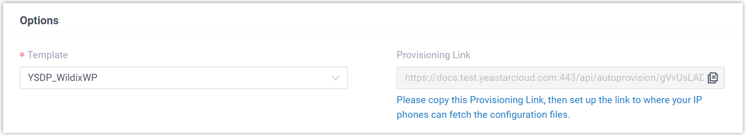 - In the subnet where the IP phone is deployed, use the generated provisioning link to configure option 66 on the DHCP Server.